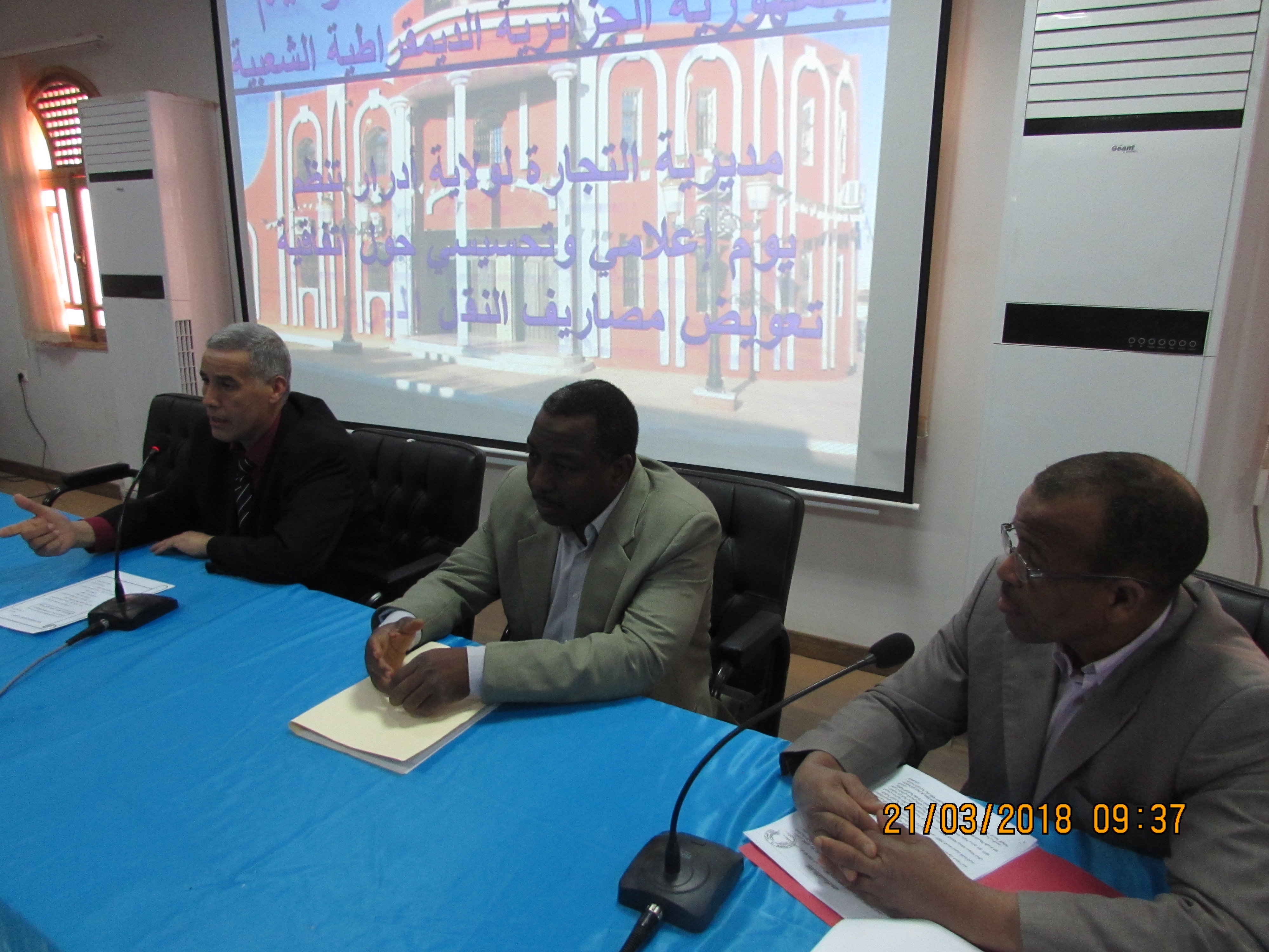 En date du 21 mars 2018 la direction du commerce de la wilaya d’Adrar a organisé une Journée d'information et de sensibilisation destinée aux operateurs économiques portant sur la convention du remboursement des frais de transport routier consacré au sud.